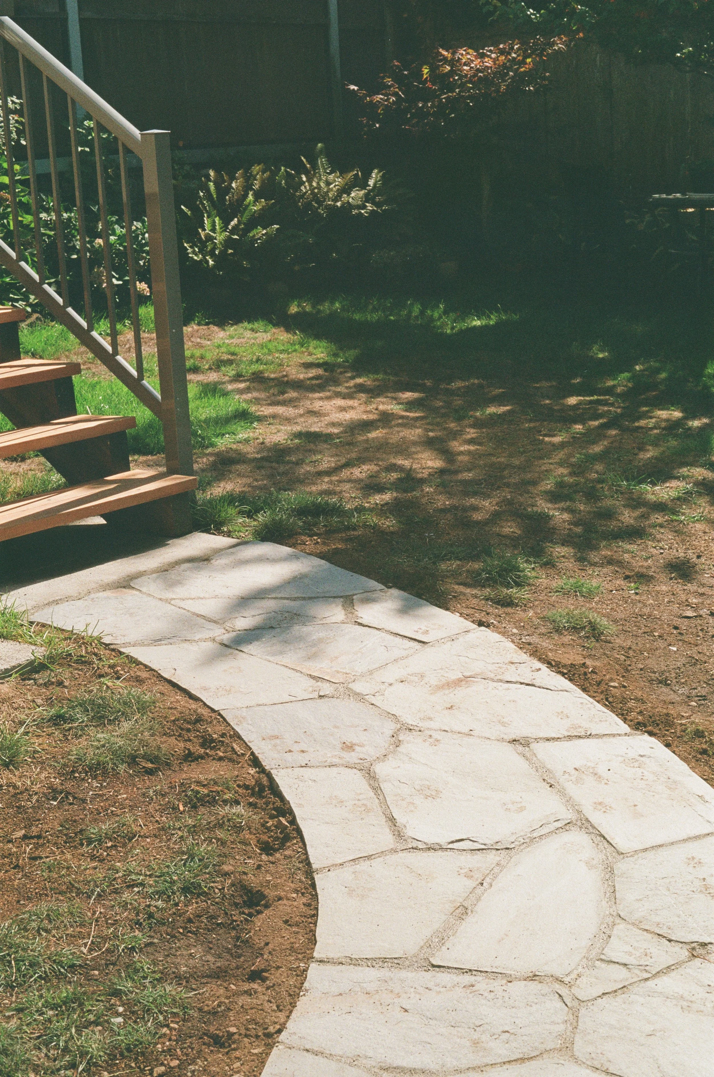Front Fence Foundation Side Entrance Flagstone Path Relaxed Flagstone Patio Drystack Garden Wall Back Steps on Bedrock