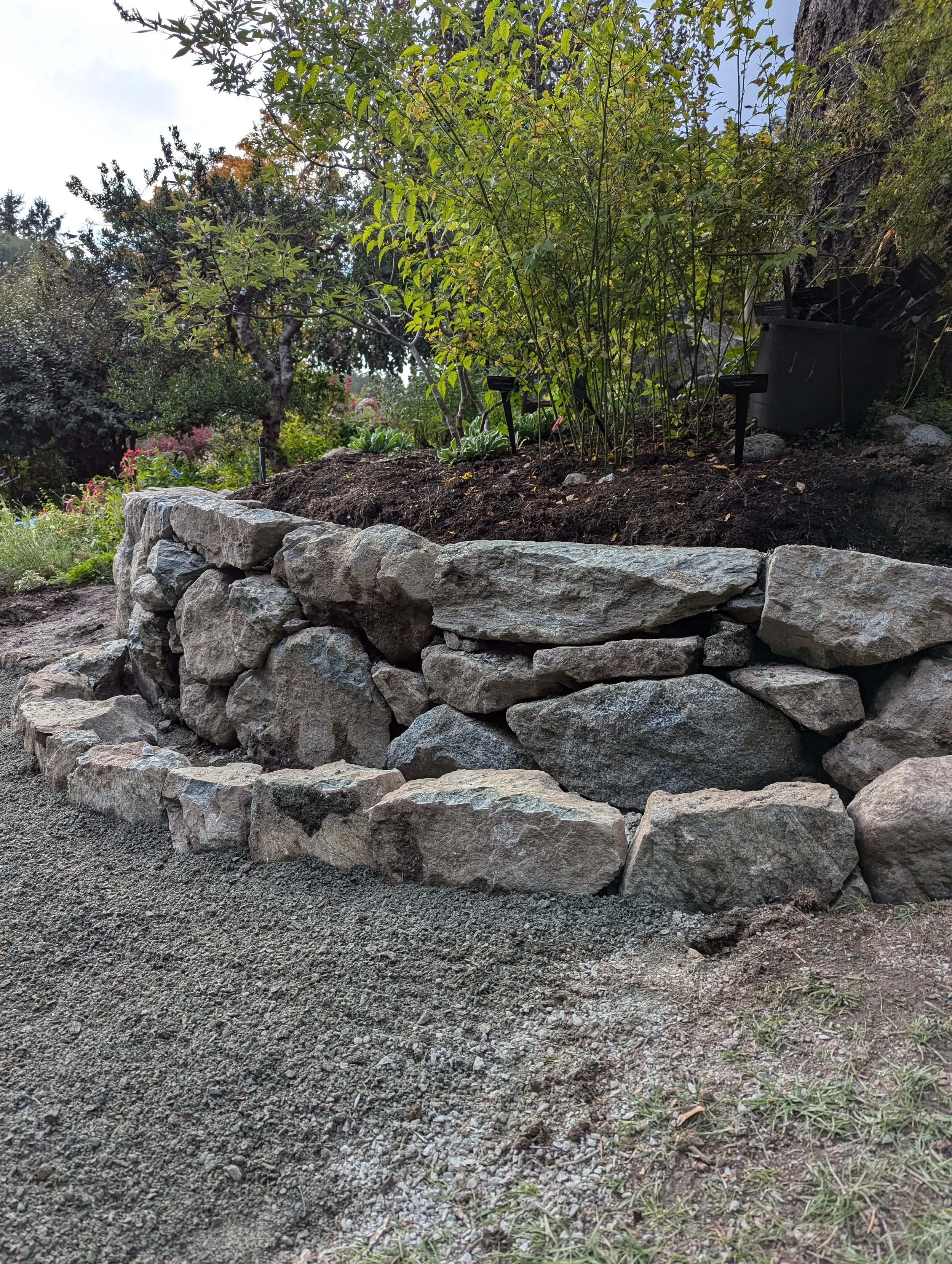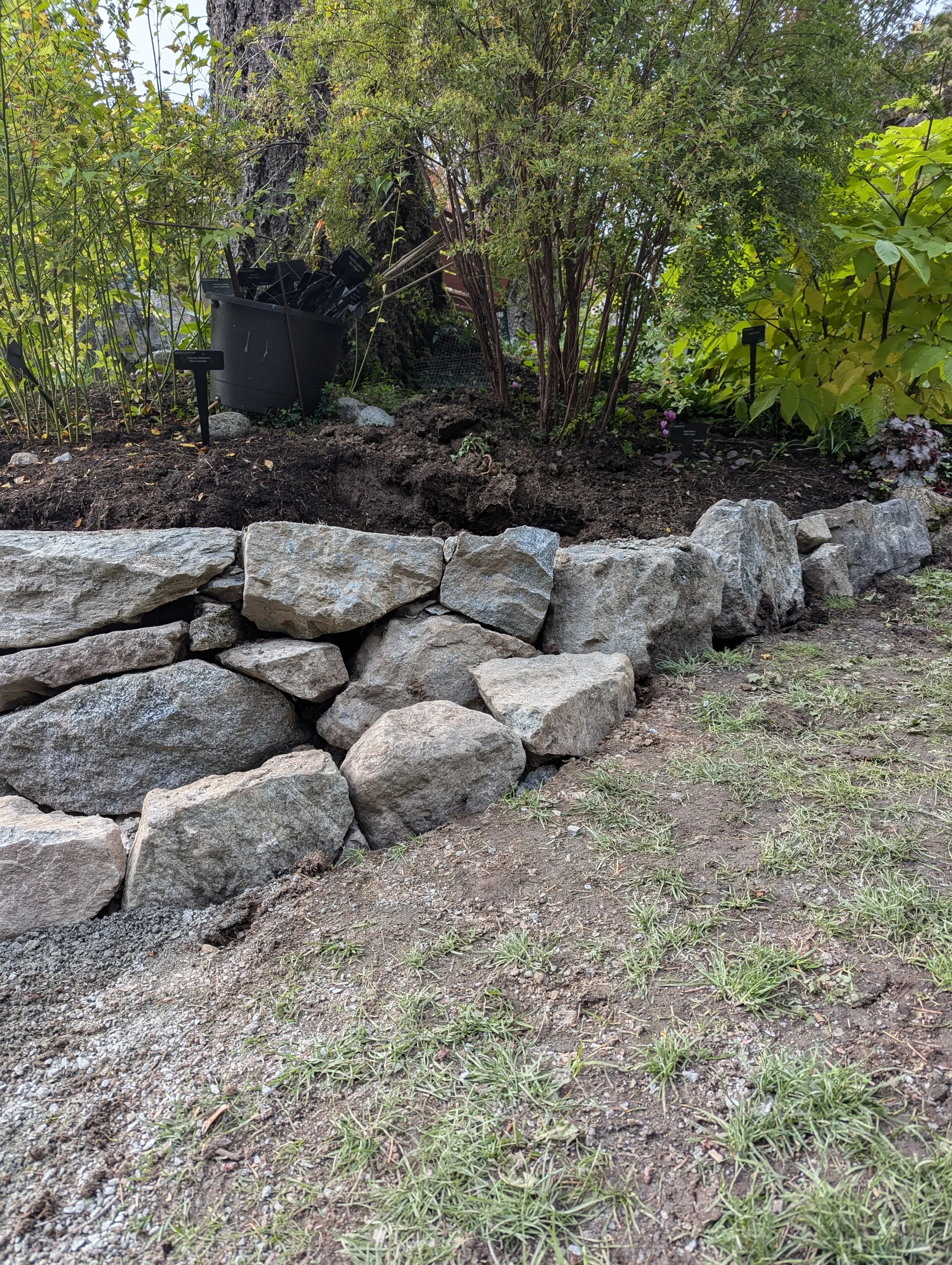Dry laid retaining wall with blast rock granite.